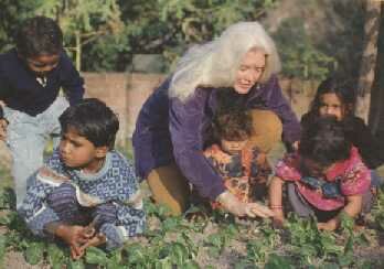 Prabhavati is a great character, feeding her 54 kids on organic vegies they grow themselves, & has just opened an Eco Tourist Lodge in the last bit of virgin forest in the Garwhal, near the source of the Ganges. The rest of this area has been turned into desert through deforestation by villagers who don't understand the consequences of endlessly cutting firewood, and the mafia in cahoots with local politicians cutting down 300 yr old trees to sell to America for blockboard.